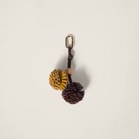 Miu Miu's bold, playful character comes to life in this soft leather micro trick with wooden logo that enriches the silhouette of sneakers and bags, creating new style combinations. - Product code: 5ID008_2FLQ_F04MV - Waxed cotton cord - With wooden detail - Engraved logo on detail - With removable metal snap-hook - Imported Materials Main material: Lambskin