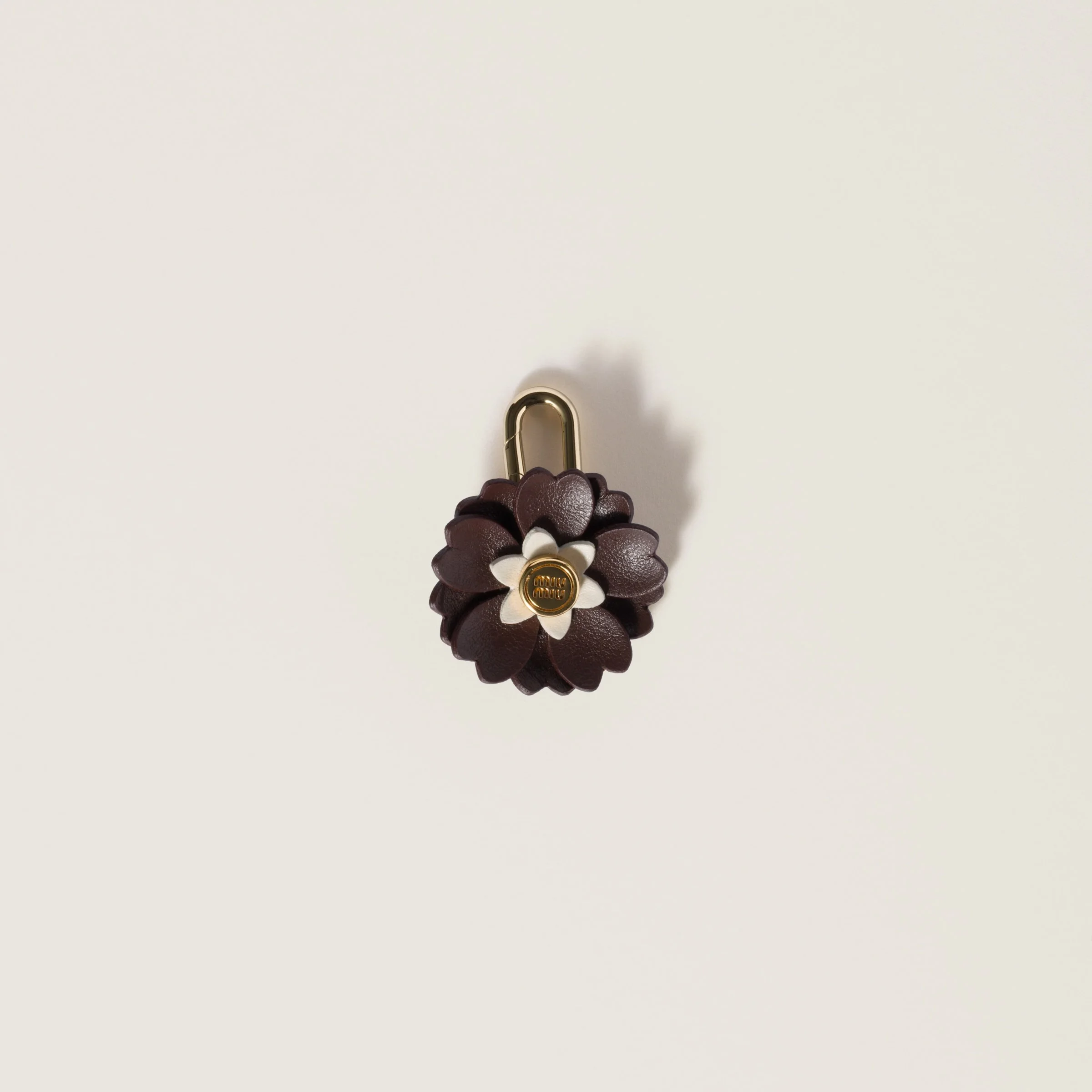 Miu Miu's elegant, playful character comes to life in this flower-inspired micro trick that enriches the silhouette of sneakers and bags, creating unique style combinations. - Product code: 5ID016_2FLQ_F03XH - With metal snap-hook - Engraved logo on detail - Imported Height 3cm Width 3cm Materials Main material: Calfskin