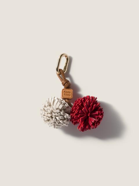 Miu Miu's bold, playful character comes to life in this soft leather micro trick with wooden logo that enriches the silhouette of sneakers and bags, creating new style combinations. - Product code: 5ID008_2FLQ_F0Q99 - Waxed cotton cord - With wooden detail - Engraved logo on detail - With removable metal snap-hook - Imported Materials Main material: Lambskin