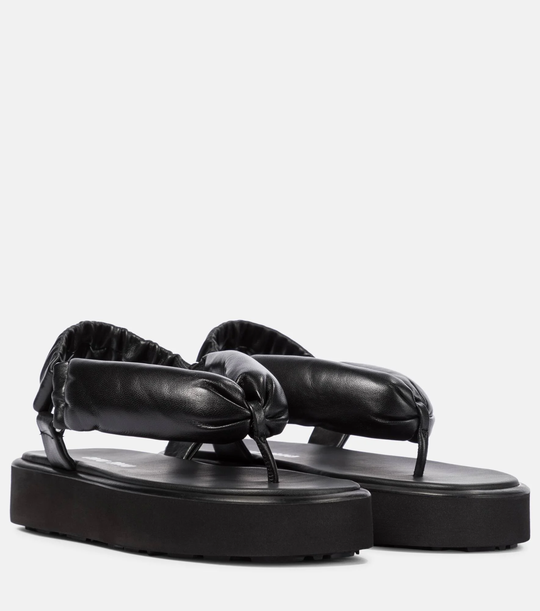 Our editors loved these Miu Miu sandals because of they strike the perfect balance of statement style and comfort. Sitting on tall flatform soles, They have padded black thong straps with an elasticated strap at the back. Wear yours with one of the label's floral dresses for a quintessentially Miu Miu look. Product Details - Toe shape: round open toe - Lining: leather - Sole: leather insole, rubber sole - Upper: lamb leather - Made in Italy - Designer color name: Nero - Item number: P00549182 Size & Fit - Fits slightly large to size - we recommend trying a half size smaller - European sizes - 3,5cm-1.5" platform (size EU 38) - 4cm-1.5" wedge heel (size EU 38)
