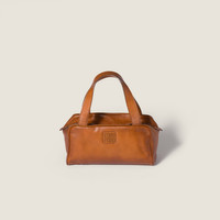 Compact and versatile, this new interpretation of the top-handle bag blends elegance and vintage experimentation, with distinctive flat handles and calf leather with an aged finish that enhances its sophisticated character. - Product code: 5BB182_2IER_F0046_V_MOO - Leather handles - Gold-tone hardware - Zipper closure - Cotton fabric interior with zipper pocket and patch pocket - Leather lettering logo on the front - Imported Height 15cm Width 28cm Length 13cm Materials Main material: Calfskin