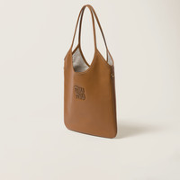 In this IVY leather bag, a classic style is enhanced with metal details and the Miu Miu lettering logo that gives the design an iconic and immediately recognizable note. - Product code: 5BG231_2CRW_F0046_V_MLN - Leather handles - Gold-tone hardware - Leather lettering logo on the front - Fabric lining with zipper pocket - Imported Height 40cm Width 35cm