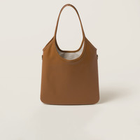 In this IVY leather bag, a classic style is enhanced with metal details and the Miu Miu lettering logo that gives the design an iconic and immediately recognizable note. - Product code: 5BG231_ACRW_F0046_V_MLN - Gold-tone hardware - Leather lettering logo on the front - Fabric lining with zipper pocket - Imported Height 40cm Width 35cm Materials Main material: Calfskin