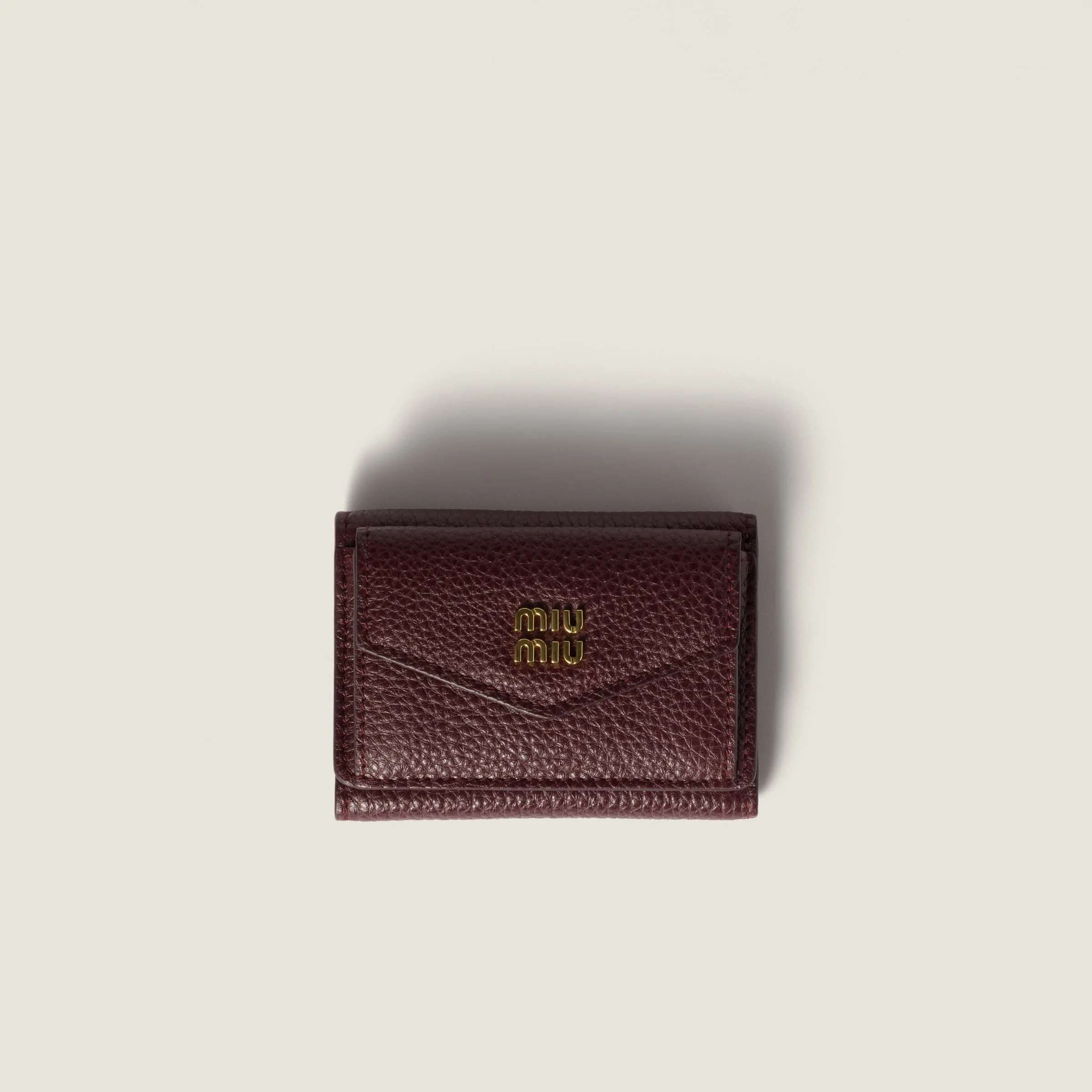 Classic elegance distinguishes this small leather wallet. The accessory with a smart design and clean lines has several slots inside and is decorated with the metal lettering logo. - Product code: 5MH021_ADT7_F0007 - Metal lettering logo - One bill compartment - Three card slots - External coin pocket with flap - Moire lining - Imported Height 7cm Width 10cm Materials Main material: Calfskin