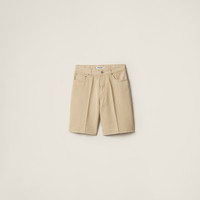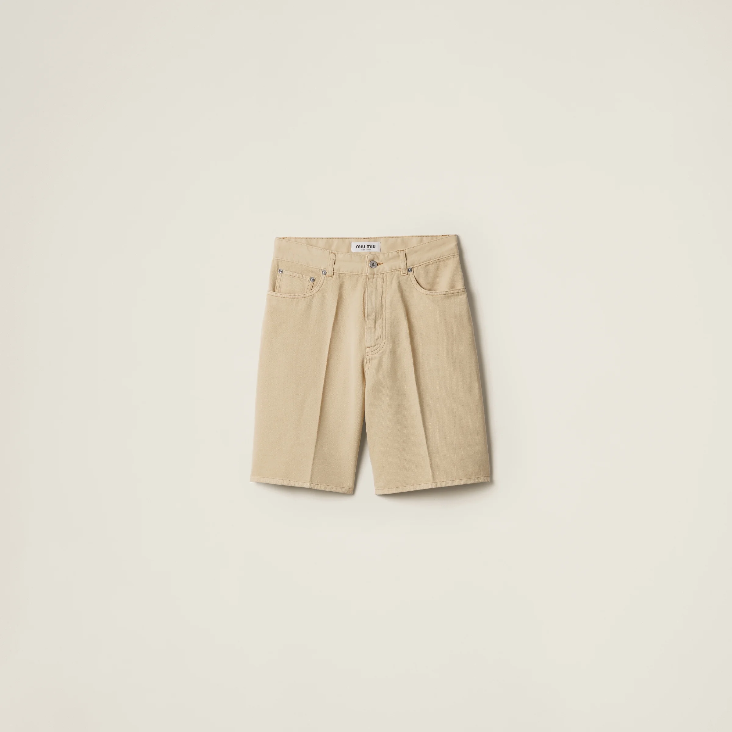 The lifestyle character of denim is reinvented in the fluid texture of these Bermuda shorts with contemporary versatility that come in beige, a color that evokes a fresh, summery spirit. - Product code: GWP568_17N0_F0006_S_OOO - Garment dyed treatment - Regular fit - Regular waist - Zipper fly with button - Matching stitching - Rounded front pockets with coin pocket - Back patch pocket - Ironed crease - Total length: 50 cm, Size: 25 - -Hem width: 31 cm, Size: 25 - Embroidered leather logo - Imported - The model is 180 cm tall and wears a size 38 Height 51cm Materials Main material: 100% Cotton