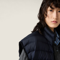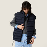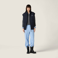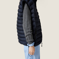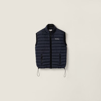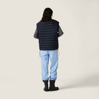 The light down padding combines comfort and style, reflecting Miu Miu's rebellious spirit. Iconic fleece and refined ponge fabric transform this down vest into an emblem of experimentation and functionality. - Product code: ML1345_1754_F0008_S_OOO - Oversized fit - Goose down padding - Stand-up collar - Zipper closure - Zipper pockets - Elasticized drawstring - Embroidered logo - Imported - The model is 180 cm tall and wears a size 38 Materials Main material: 100% Recycled Polyester