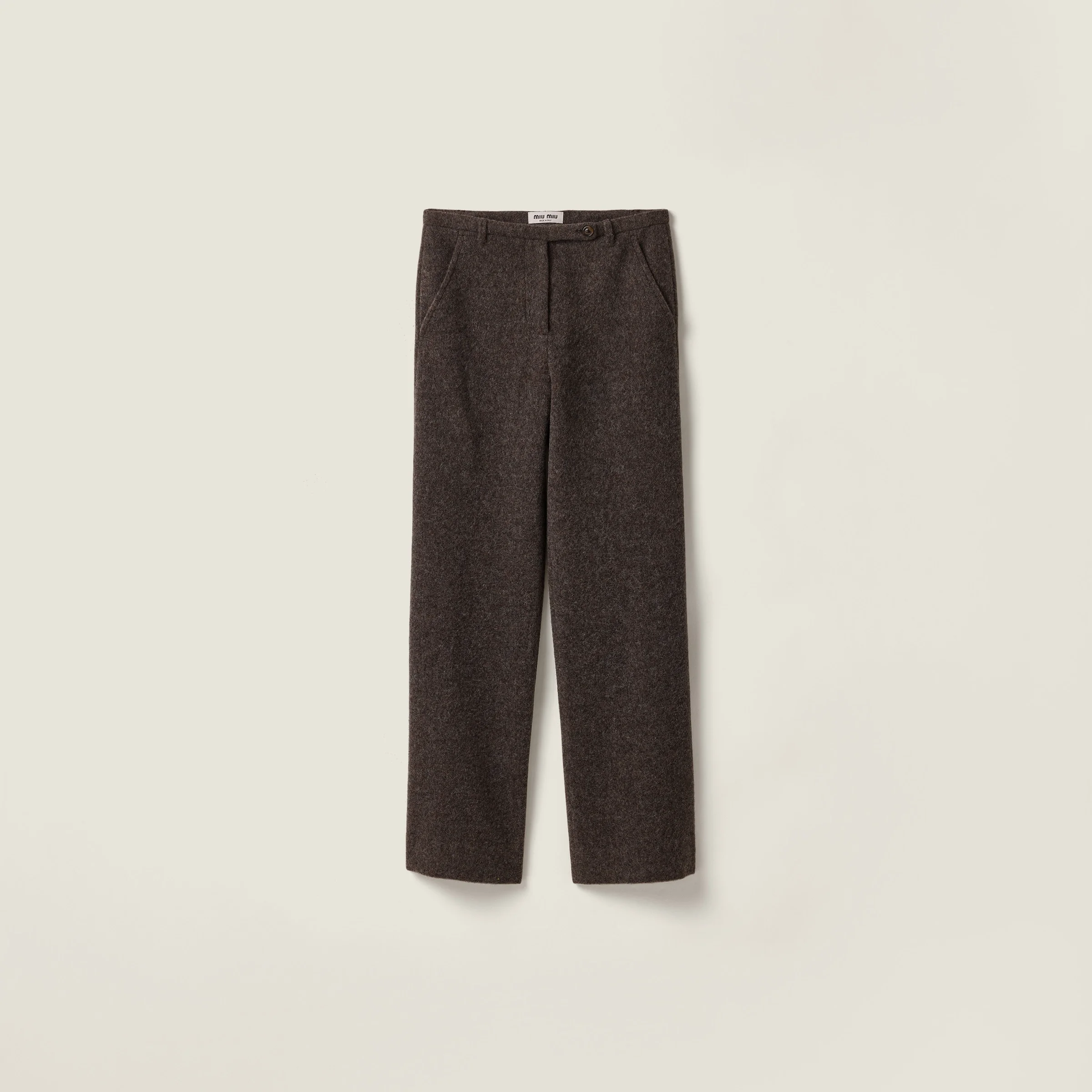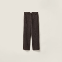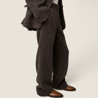 These pants, an emblem of the classic wardrobe, reinterpret the tailored menswear cut. This new interpretation of feminine elegance is enhanced by the soft fit and the authentic, light texture of Shetland wool. - Product code: MP1931_1744_F0192_S_OOO - Menswear fit - Lined garment - Zipper fly with button - Angled front slash pockets - Back welt pockets - Embroidered logo - Imported - The model is 177 cm tall and wears a size 38 Height 110cm Materials Main material: 100% Wool