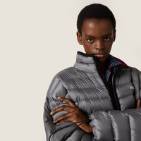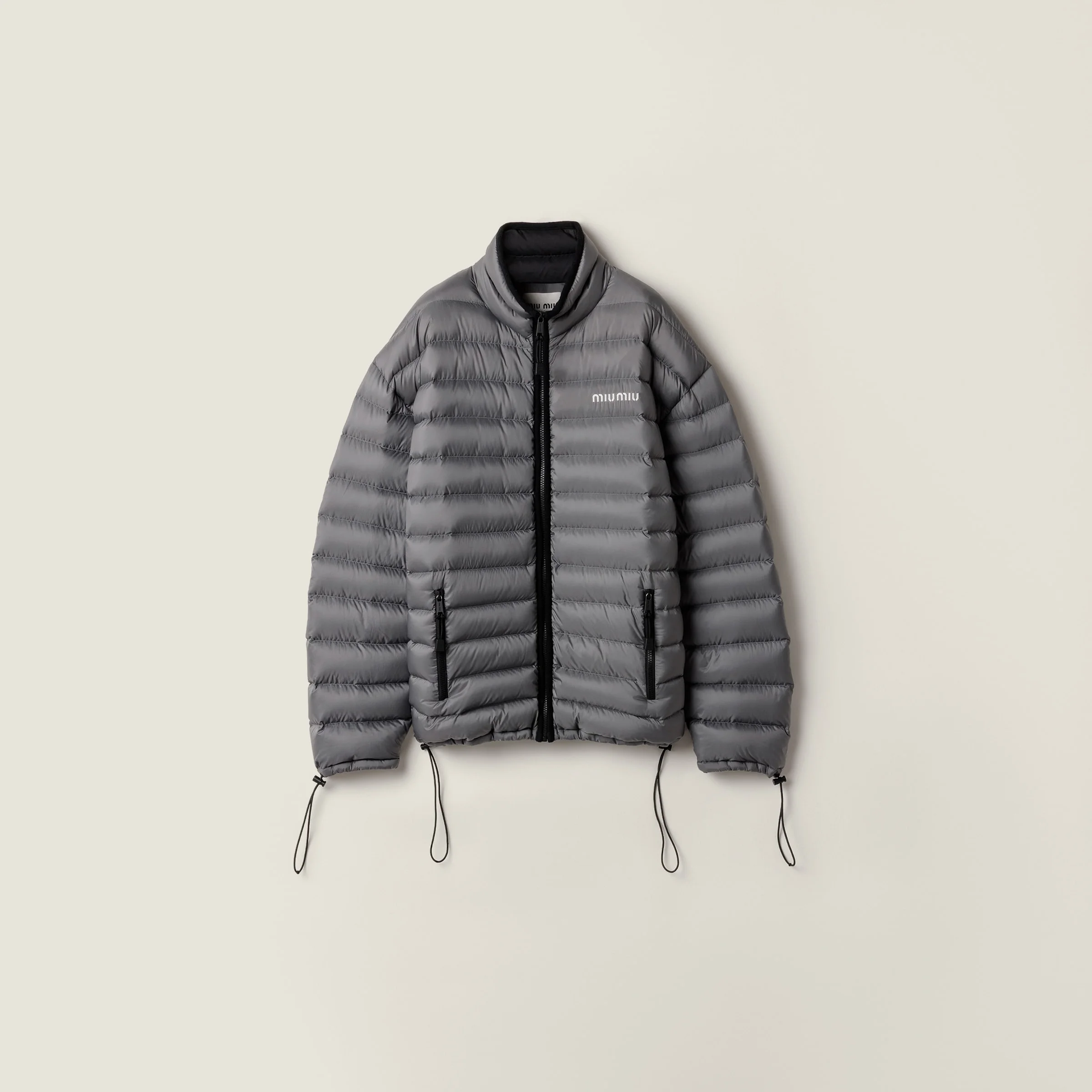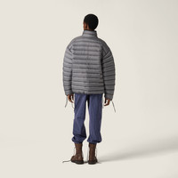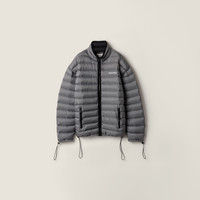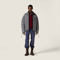 Light goose down padding adds comfort and style, reflecting Miu Miu's rebellious spirit. Iconic fleece and the refined ponge fabric transform this oversized down jacket into an emblem of experimentation and functionality. - Product code: ML1347_1754_F0276_S_OOO - Oversized fit - Goose down padding - Stand-up collar - Long sleeves - Drawstring cuffs - Zipper closure - Welt zipper pockets - Elasticized drawstring hem - Embroidered logo - Imported - The model is 178 cm tall and wears a size 38 Height 70cm Materials Main material: 100% Recycled Polyester