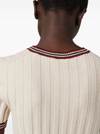 logo-applique cashmere top Highlights - Beige - Cashmere - Ribbed knit - Applique logo - Round neck - Short sleeves - Straight hem Composition Cashmere 100% Washing instructions Read Manufacturer Guidelines