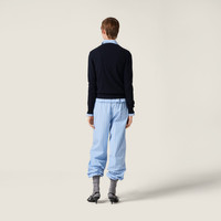 The argyle motif adds playful sophistication to the fine craftsmanship of this soft cashmere button cardigan, reinterpreting a classic piece according to Miu Miu's refined and contemporary vision. - Product code: MMF988_174B_F0008_S_OOO - Argyle intarsia knit - Slim fit - Long sleeves - Front button closure - Ribbed knit collar - Semi-raglan shoulder - Ribbed knit cuffs and hem - Intarsia logo - Imported - The model is 178 cm tall and wears a size 38 Height 58cm Materials Main material: 100% Cashmere
