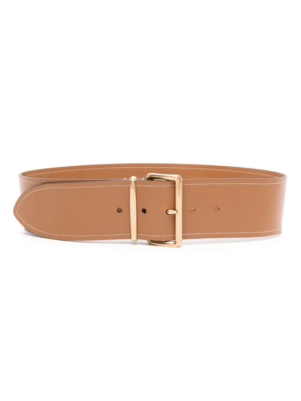 logo-engraved buckle leather belt Highlights - Caramel brown - Calf leather - Smooth grain - Logo-engraved buckle - Punched holes Composition Calf Leather 100% SIZE & FIT Measurement Maximum Length 31.49 in(80 cm) Minimum Length 27.55 in(70 cm) WIDTH 1.96 in(5 cm)