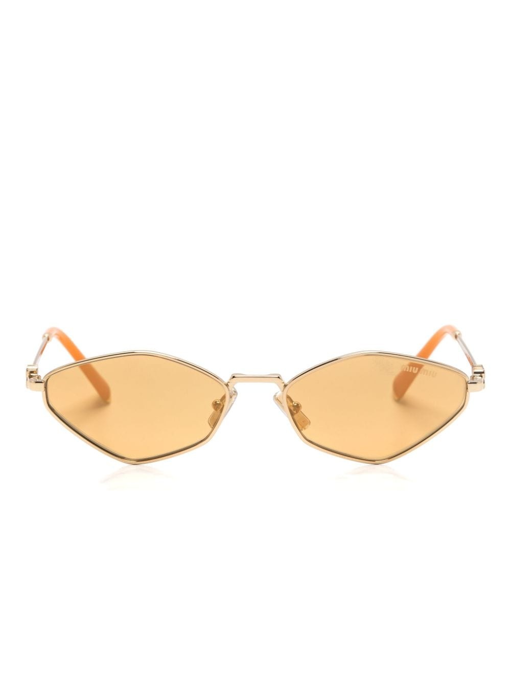 MU56ZS geometric-frame sunglasses Highlights - Gold-tone/orange - Metal - Geometric frame - Nose pads - Brown tinted lenses - Straight arms and curved tips - These glasses come with a protective case. Composition Metal 100% SIZE & FIT Measurement Arm Length 5.51 in(14 cm) Bridge Width 0.66 in(1.7 cm) Lens Diameter 2.2 in(5.6 cm) Total Width 5.51 in(14 cm)