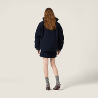 Fleece, an iconic fabric of the Miu Miu wardrobe, adds character to the simple lines of this miniskirt. The embroidered logo in a contrasting color and the sporty detail of the front zipper pockets make this garment contemporary, perfect for bold and casual looks. - Product code: MG2518_18E3_F0008_S_OOO - Mini silhouette - Front drawstring closure - Embroidered logo - Imported - The model is 180 cm tall and wears a size 38 Height 32cm Materials Nylon