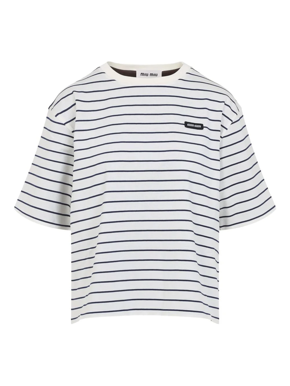 striped logo T-shirt Highlights - Off-white - Navy blue stripes - Short sleeves - Crew neck - Boxy shape - Logo patch Composition Cotton 100% Washing instructions Read Manufacturer Guidelines
