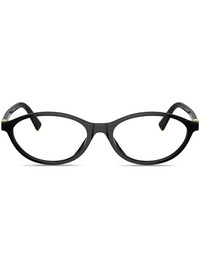 logo-plaque oval-frame glasses Highlights - Black - Acetate - Glossy finish - Oval frame - Clear lenses - Logo plaque at the arm - Straight arms - Curved tips - All glasses from farfetch are sold as non-prescription frames. - These glasses come with a protective case. Composition Acetate 100% SIZE & FIT Measurement Arm Length 5.51 in(14 cm) Bridge Width 0.66 in(1.7 cm) Lens Diameter 2.08 in(5.3 cm)