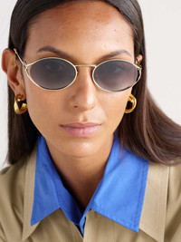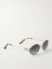 EDITORS'NOTES Miu Miu's sunglasses will lend a retro slant to any outfit. Made from gold-tone metal, they have oval frames fitted with gradient lenses and are detailed with the label's logo at the temples. The tortoiseshell acetate-tipped arms ensure a comfortable fit. SIZE & FIT This item’s measurements are: - Height: 2cm / 0.8in - Width: 14cm / 5.5in DETAILS & CARE - Gold-tone metal - Come with a case - 100% UV protection