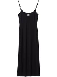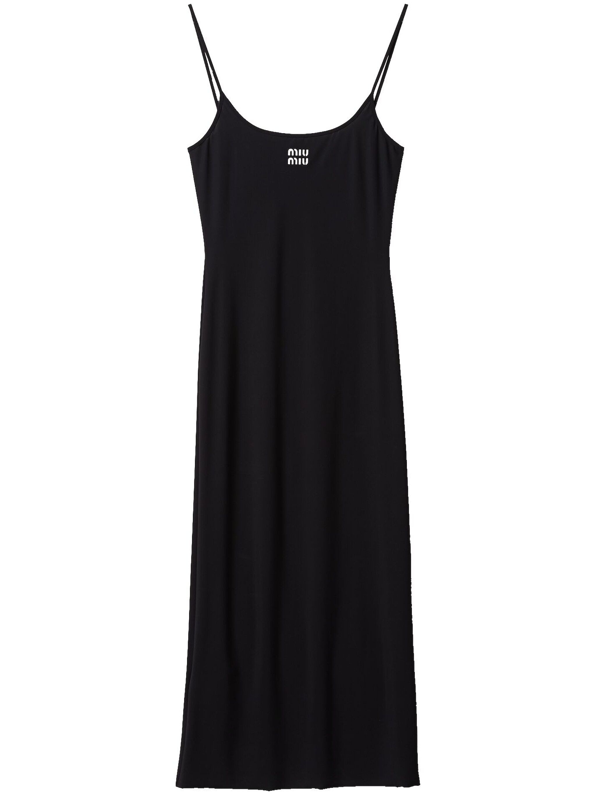 black/white recycled polyamide blend jersey texture shift style logo print to the front scoop neck slip-on style spaghetti straps mid-length Learn more about what makes a product Conscious on our Conscious Criteria page This item is made from at least 50% recycled or upcycled materials. For recycled synthetic clothing products, we highly recommend using a microfibre-catching washing bag to ensure that no microplastics that can pollute water are released in the process. Size & Fit Model Measurements: Bust: 0cm Height: 0cm Hips: 0cm Waist: 0cm Fabric and Care Designer Style ID: MF5049S232122R Designer Colour: F0002 BLACK Composition: Spandex/elastane 27%, Recycled polyamide 73%, Recycled polyamide 73% Washing instructions: Read Manufacturer Guidelines Made in Italy