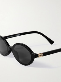 Miu Miu's sunglasses have slender, oval frames reminiscent of styles from the '90s and early aughts. They're made from lightweight acetate and decorated with gold-tone hardware at the slim arms that spell out the label's moniker. Stow yours in the accompanying case between wears. Details & Care - Black acetate - Come with a case - 100% UV protection