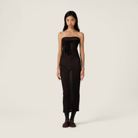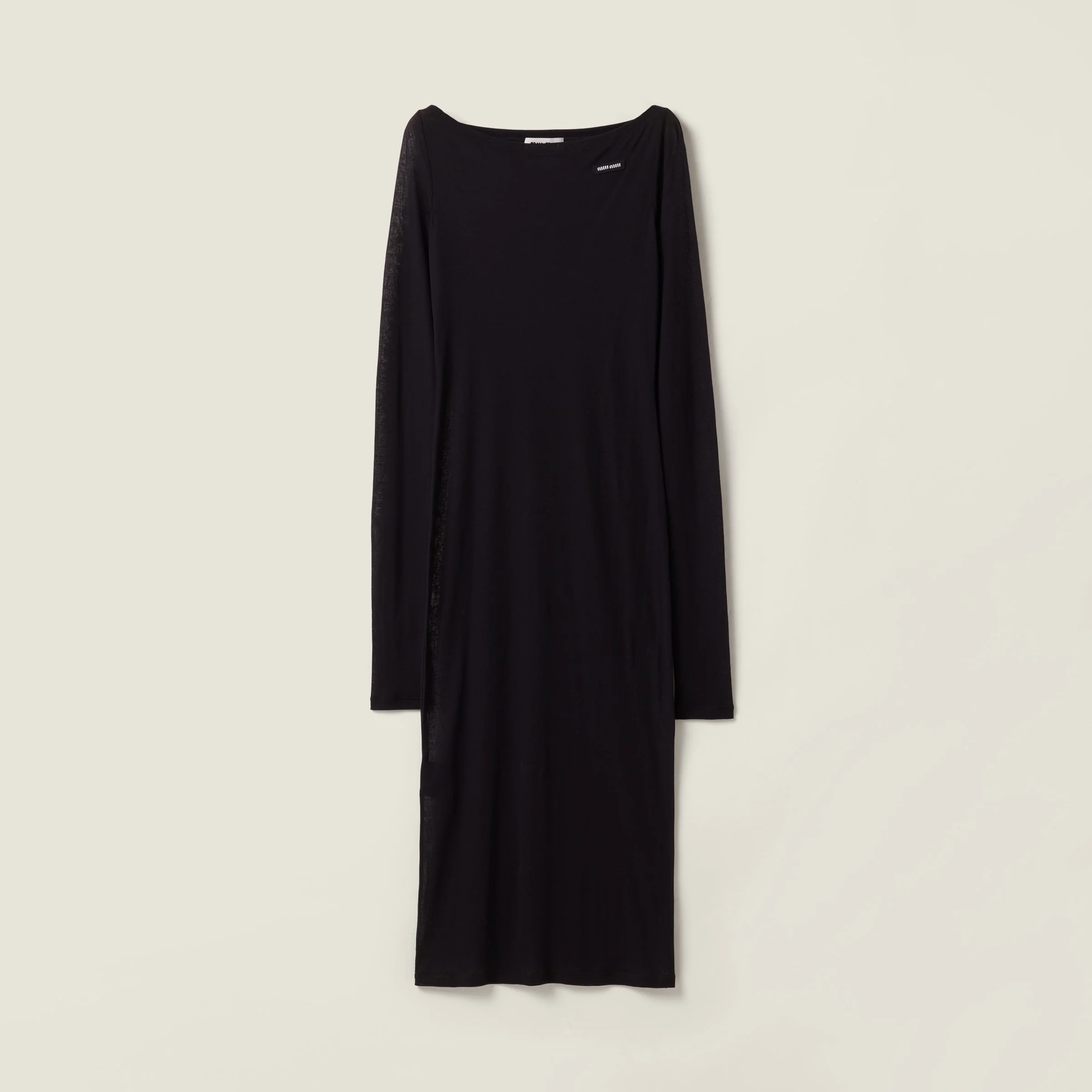 Subtle transparencies reveal the versatility of this ribbed knit jersey dress that can be worn with a scoop neck or strapless, thanks to the special sleeves that wrap around the bust. - Product code: MF5845_133O_F0002_S_OOO - Skinny fit - Unlined garment - -Knit logo label - Imported - The model is 176 cm tall and wears a size 38 Height 125cm Materials Main material: 100% Cotton