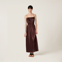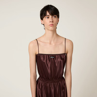 Inspired by the world of lingerie, this evening dress expresses unexpected seduction, enhanced by the luster of satin and raw-cut hem, which accentuate its irreverent elegance. - Product code: MF5898_15ZC_F0324_S_OOO - Straight fit - Unlined - Straight neckline - Raw-cut hem - Knit logo label - Imported - The model is 180 cm tall and wears a size 38 Height 140cm Materials Main material: 54% Acetate 46% Viscose
