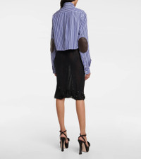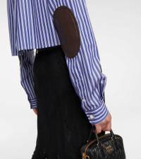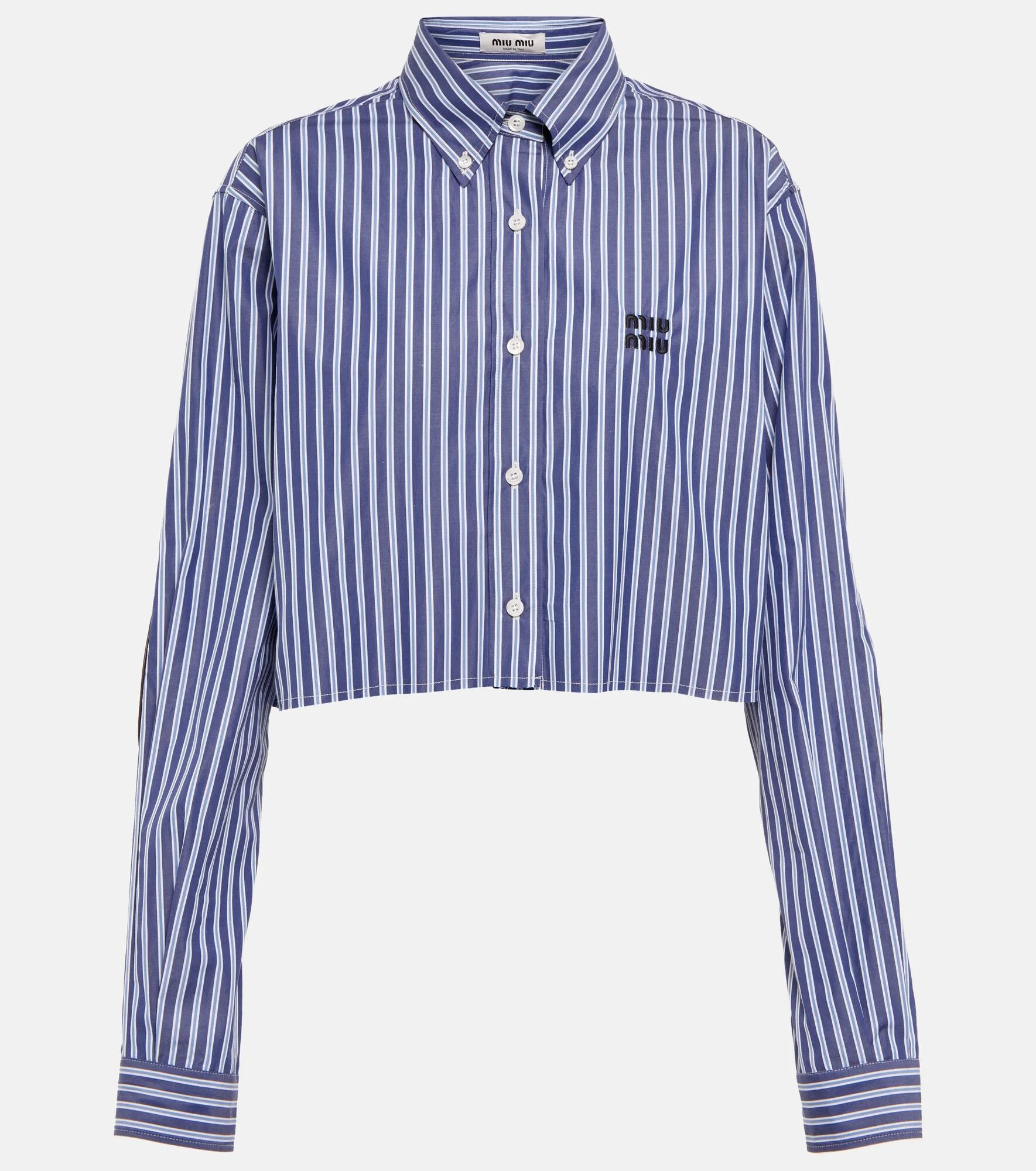 Miu Miu has mastered the art of creating perfectly feminine pieces, as proven again by this shirt. This long-sleeved piece is made from cotton and is designed to be cropped. Product Details - Made in Italy - Material II: 56% polyester (recycled), 44% polyurethane - Care instructions: machine wash at 30 degrees - Designer color name: Bleu - Buttoned cuffs - Closure: buttoned placket - Material: 100% cotton - Item number: P00753001 Size & Fit - True to size - Dropped shoulders - Oversized - Cropped - The model seen in the picture is 178cm-5'10" and wearing a size IT 40