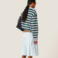 The Miu Miu logo stands out against the simple, oversized lines of this tee, adding an iconic and distinctive note to the garment. - Product code: MJL014_14RT_F03UD_S_OOO - Oversized fit - Crew-neck - Long sleeves - Logo patch - Twin-needle hem - Devore workmanship - Imported - The model is 180 cm tall and wears a size 38 Height 71cm Materials Main material: 100% Cotton