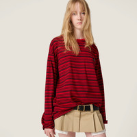 The Miu Miu logo stands out against the simple, oversized lines of this tee, adding an iconic and distinctive note to the garment. - Product code: MJL014_14RT_F0927_S_OOO - Oversized fit - Crew-neck - Long sleeves - Logo patch - Twin-needle hem - Devore workmanship - Imported - The model is 180 cm tall and wears a size 38 Height 71cm Materials Main material: 100% Cotton