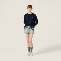 Miu Miu style icons like jersey and stripes come together in a garment that interprets layering from a contemporary perspective for playful looks and free, personal interpretations. - Product code: MJL128_17OR_F057W_S_OOO - Boxy fit - Unlined garment - Long sleeves - Crew-neck - Twin-needle hem - Logo patch - Imported - The model is 178 cm tall and wears a size 38 Height 70cm Materials Main material: 100% Cotton