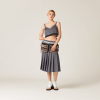 New to the collection and already iconic. During the Spring Summer 2023 show, this marbleized denim peplum belt represented a concept of fashion as an integral part of real life where utility, benefit, and service affect physical expression. The roomy zipper pouch pockets, inspired by the utility world, are an expression of practicality and border between decoration and function. The embroidered logo decorates this new vision of style. The special marbleized treatment gives the fabric a lightly ombré effect while the refined details define an original and distinctive aesthetic. - Product code: GWD298_121H_F0002_S_231 - Marbleized denim - Embroidered logo - Unlined - Imported - The model is 175 cm tall and wears a size 38 - Height: 18cm