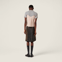 Inspired by the combinations of the Upcycled collection, this top combines elegant marocain crepe with a modern ribbed jersey polo shirt, interpreting the codes of bold, experimental femininity. - Product code: MT2164_18JK_F04W7_S_OOO - Straight fit - Polo-shirt collar - Front button closure - Attached jersey polo shirt - Short sleeves - With embroidered neckline - Adjustable straps - Knit logo label - Imported - The model is 178 cm tall and wears a size 38 Materials Main material: 100% Silk