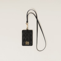 Characterized by an elegant yet functional compact design, this badge holder with neck strap is made of iconic matelasse leather. The accessory decorated with the metal lettering logo is completed by two card slots. - Product code: 5MC016_AFPP_F0002 - Matelasse motif - Metal lettering logo - Two card slots - Moire lining - Removable leather neck strap - Imported Height 10.5cm Width 7cm Materials Main material: Lambskin