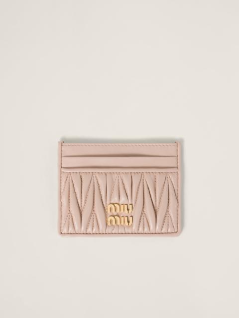This compact accessory blending form and function is enhanced by the matelasse workmanship of the leather. Equipped with card slots, it is decorated by the vertical metal lettering logo. - Product code: 5MC076_AFPP_F0F16 - Matelasse motif - Metal lettering logo - Six card slots - Moire lining - Imported Height 8cm Width 10.5cm Materials Main material: Lambskin