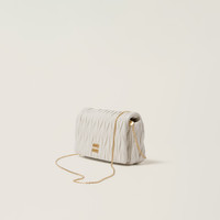 Precious matelasse workmanship enhances the compact lines of this nappa leather mini-bag thanks to a three-dimensional, textured, and extremely sophisticated effect. The lettering logo on the front echoing the different metallic finishes stands out against the refined motif with an iconic and instantly recognizable touch. The dynamic, elegant lines and the detachable and adjustable shoulder strap make the bag versatile, functional and modern. - Product code: 5BP086_AN88_F0009_V_COO - Matelasse workmanship - Detachable chain shoulder strap, max. length 120 cm - Gold-tone/steel hardware - Metal lettering logo on the flap - Flap closure with magnet - Fabric lining with patch pocket - Imported Height 9.5cm Width 18cm Length 4cm Materials Main material: Lambskin