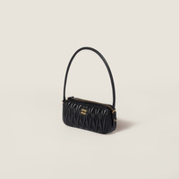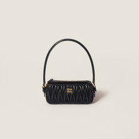 This matelasse nappa leather pouch with a compact and refined design is inspired by iconic Miu Miu bags and reveals elegant functionality thanks to the strap that lets you wear it over your shoulder. - Product code: 5NE024_AFPP_F0002 - Detachable, adjustable leather shoulder strap - Zipper closure - Cotton satin lining - Metal lettering logo - Imported Height 10cm Width 20cm Length 4.5cm Materials Main material: Lambskin