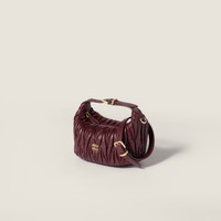The matelasse motif, an emblem of Miu Miu style, is renewed in the practical and functional design of this pouch, perfect for carrying by hand and enriched with precious finishes and the metal logo. - Product code: 5NE026_AFPP_F0007 - Matelasse workmanship - Adjustable leather handle - Zipper closure - Cotton satin lining - Metal lettering logo - Imported Height 8.5cm Width 15cm Length 8cm Materials Main material: Lambskin