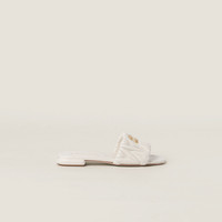 Fine matelassé workmanship gives these nappa leather slides a refined, textured, three-dimensional appearance. The metal lettering logo stands out on the matelassé motif thanks to its contrast in color and texture, giving the sandal an iconic note. - Product code: 5XX605_88T_F0009_F_010 - Upper with metal lettering logo - Screen-printed logo - Leather sole - Leather-covered heel, height: 10 mm - Imported