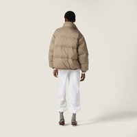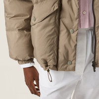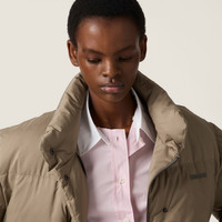 Sleek, oversized lines characterize this technical ponge down jacket. The elasticized cuffs and hem add sporty details while the logo completes the design. - Product code: ML1110_158A_F0276_S_OOO - Oversized - Goose down padding - Ring collar - Long sleeves - Elasticized cuff - Zipper and snap closure - Patch pockets - Elasticized drawstring hem - Transfer print logo - Imported - The model is 178 cm tall and wears a size 38 Height 72cm Materials Main material: 100% Recycled Polyester