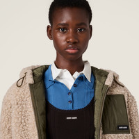Inspired by a '90s sport aesthetic, this down jacket has a hybrid construction that combines teddy fabric on the outside and a technical ponge interior enriched with a light goose down padding for a casual outdoor attitude. - Product code: ML1376_18S9_F03QQ_S_OOO - Oversized fit - Goose down padding - Hood with drawstring - Long sleeves - Cuffs with drawstring - Zipper closure - Side pockets - Side pockets - Elasticized drawstring hem - Technical ponge patch pocket - Knit logo patch - Imported - The model is 178 cm tall and wears a size 38 Height 64cm Materials Wool