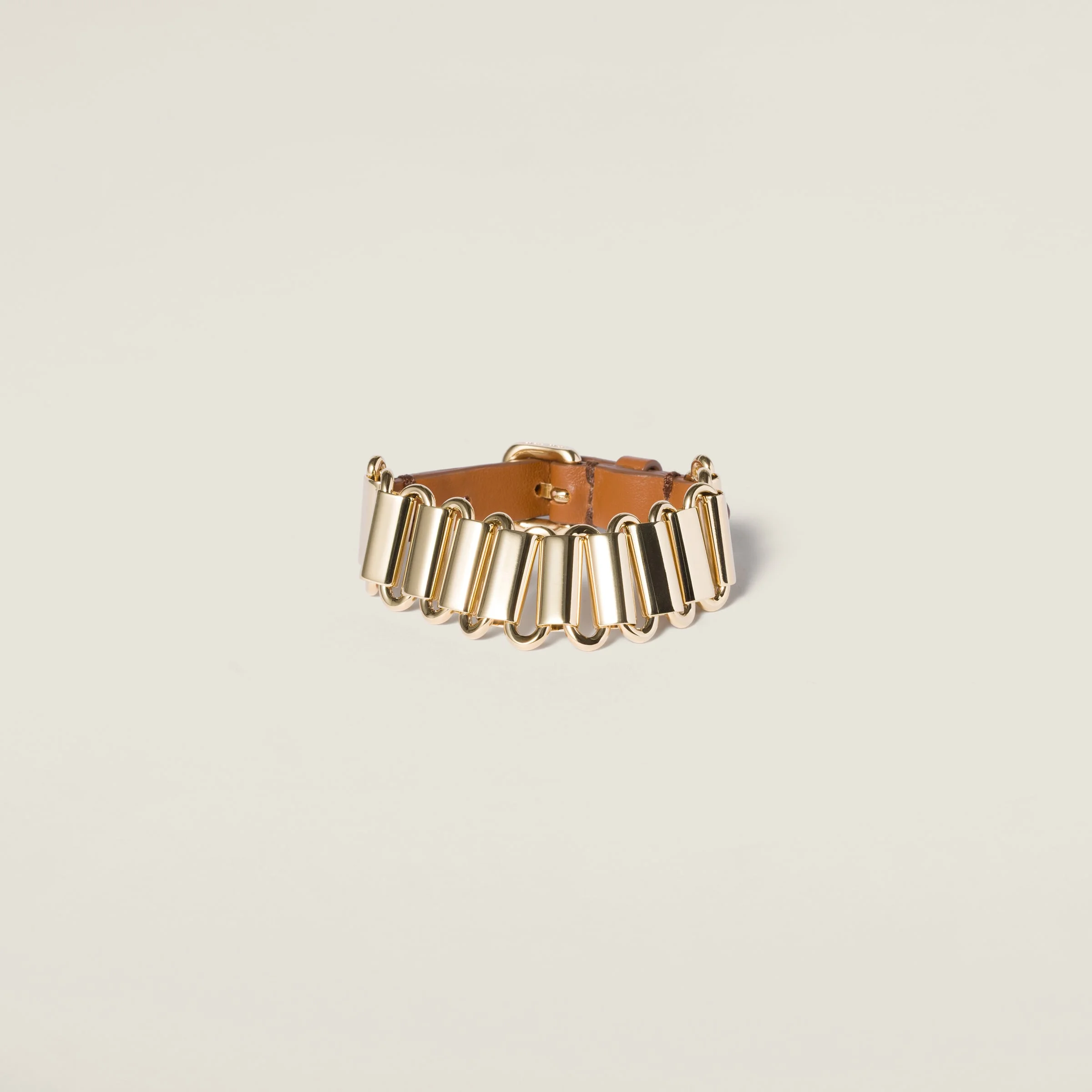 Inspired by the belts of the SS25 fashion show, this bracelet combines the lustrous shine of its gold elements with the sophistication of soft leather, elevating simple looks through bold layering and contrasts. - Product code: 5IB718_2IEQ_F0C1U - Metal buckle closure - Logo-engraved buckle - Imported Height 2cm Materials Main material: Calfskin