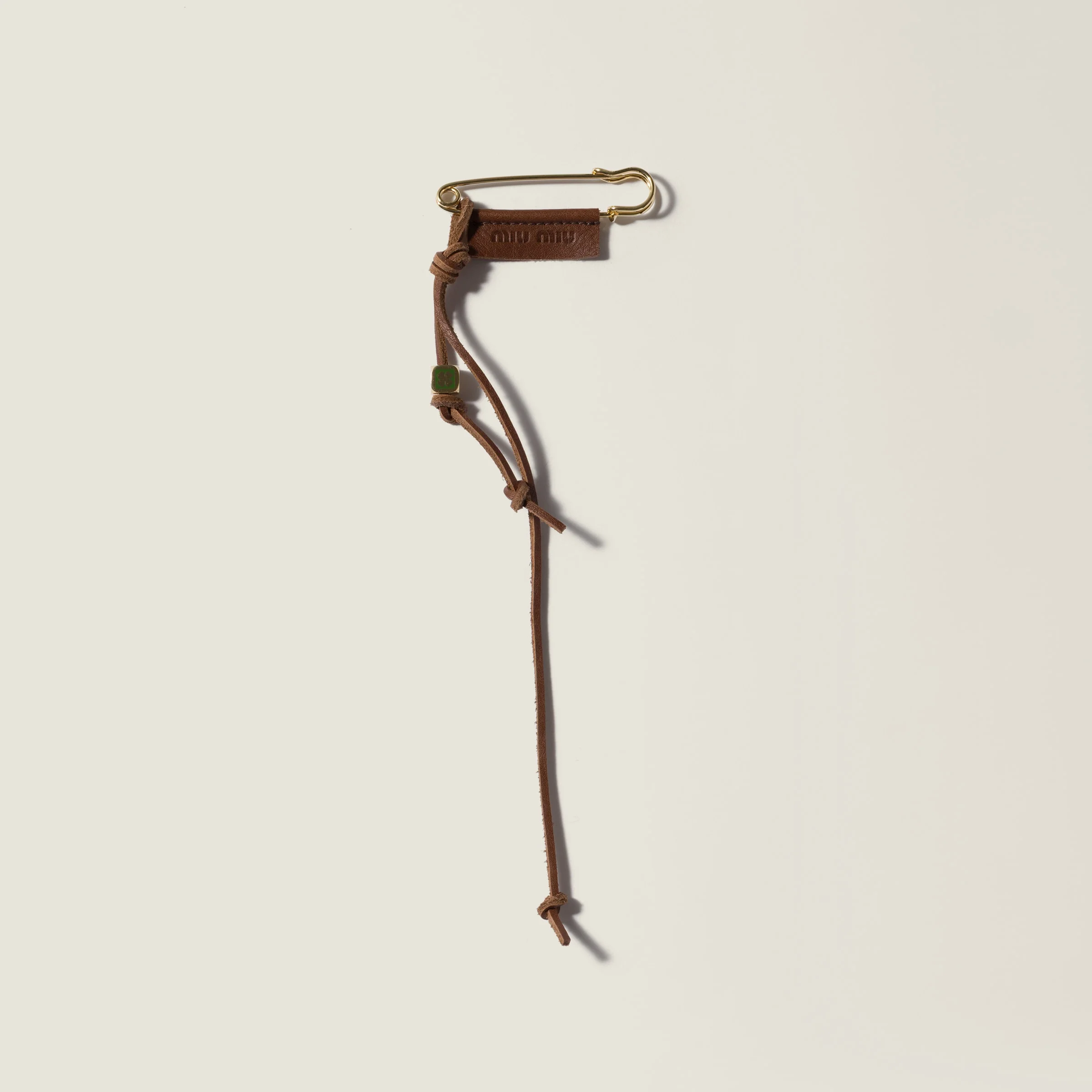 This sleek safety pin brooch for unique looks can be adorned with playful combinations of charms for a lively, personal touch. - Product code: 5IS187_2G9A_F0005 - Heat-stamped logo on leather detail - With enameled metal detail - Imported Materials Main material: Calfskin