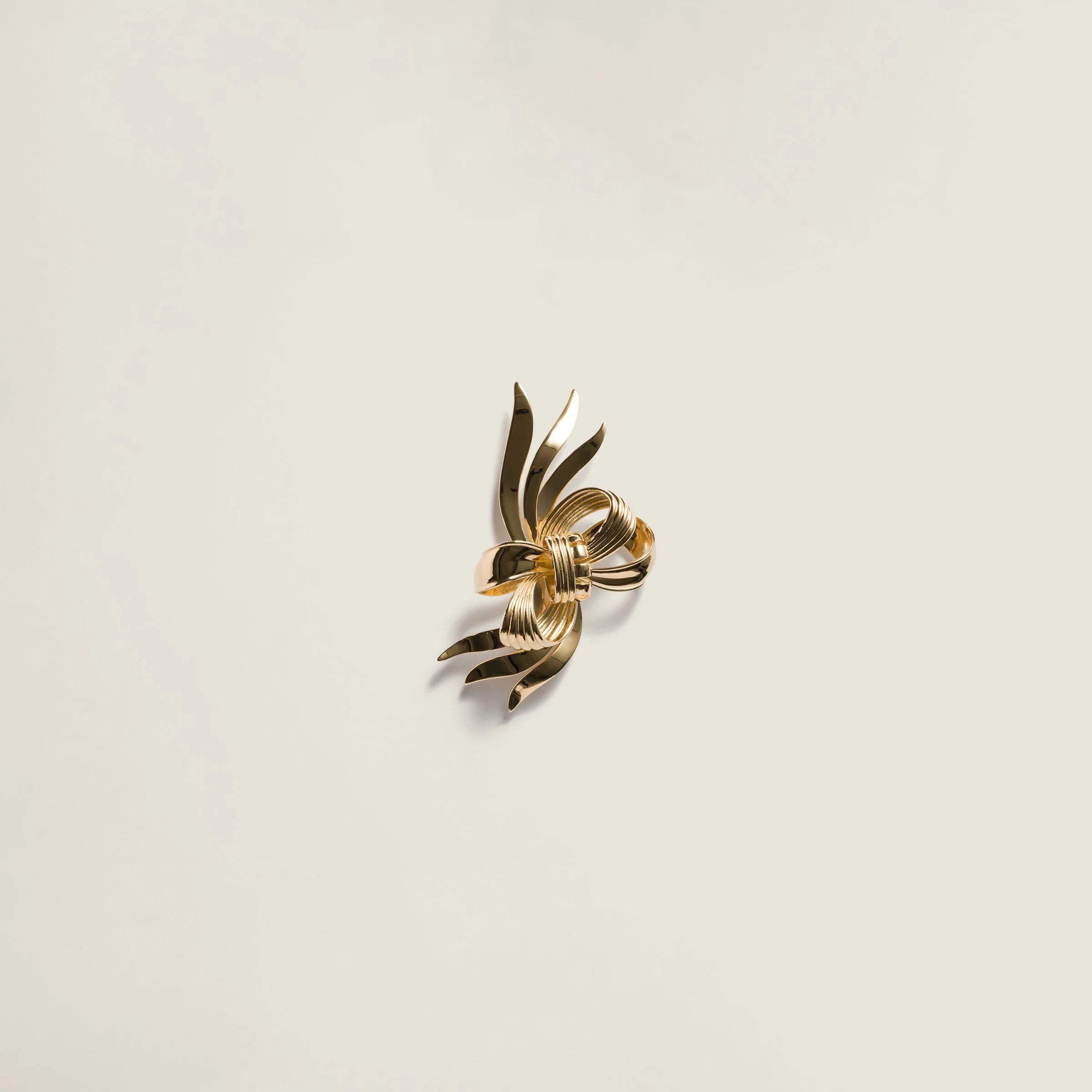 The intertwined bow design of this oversized brooch blends classic inspirations and a contemporary spirit, with sculptural volumes and lustrous reflections that add movement and character to simple looks. - Product code: 5IS131_2IEV_F0056 - Needle closure on the back - Logo lasered on the back - Imported Height 9.97cm Width 7.95cm Materials Main material: Brass
