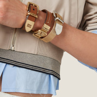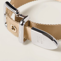 The Miu Miu logo with its iconic character stands out on the buckle of this metal bracelet. - Product code: 5IB555_2CR4_F0BSU - Metal buckle closure - Visible logo - Maximum fit 17.7 cm - Imported Height 1.6cm Width 25.3cm