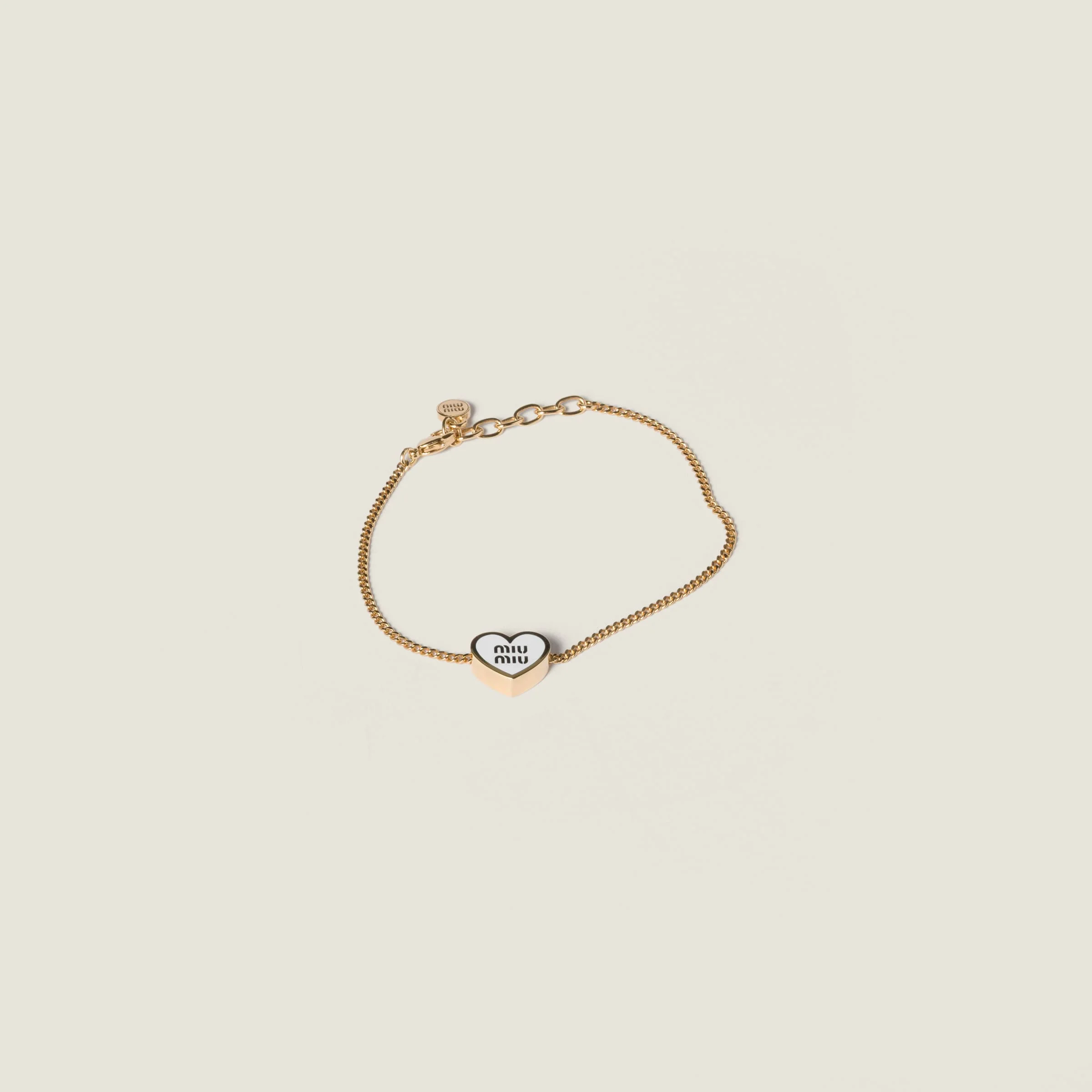 A heart-shaped logo-engraved charm animates the simple lines of this bracelet in a lively contrast between femininity and iconic minimalism. - Product code: 5IB722_2IE2_F061C - Lobster claw clasp - With enamel detail - Logo on the detail and small medal - Imported Width 20.5cm Materials Main material: Brass