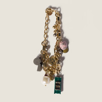 This vintage-look bracelet combines pearls, charms, and enameled details, bringing back symbols and memories of the past in an accessory with personal, sophisticated allure. - Product code: 5IB743_2IFY_F0COC - With baroque pearl and bronzite - Lobster claw clasp - Enameled detail - Logo-engraved medal - Imported Width 22.5cm Materials Other materials