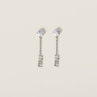 Miu Miu reinvents the classic dangle earring with its iconic logo and whimsical femininity. Artificial crystals add delicate shimmering touches that complete the piece with a refined note. - Product code: 5IO058_2DNC_F0OKL - For pierced ears - Visible logo - Artificial crystals - Imported Height 4.5cm Width 0.9cm Length 1.7cm Materials Other materials