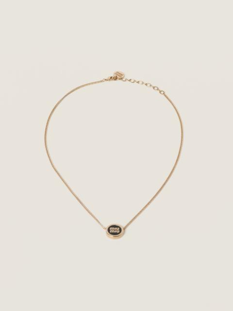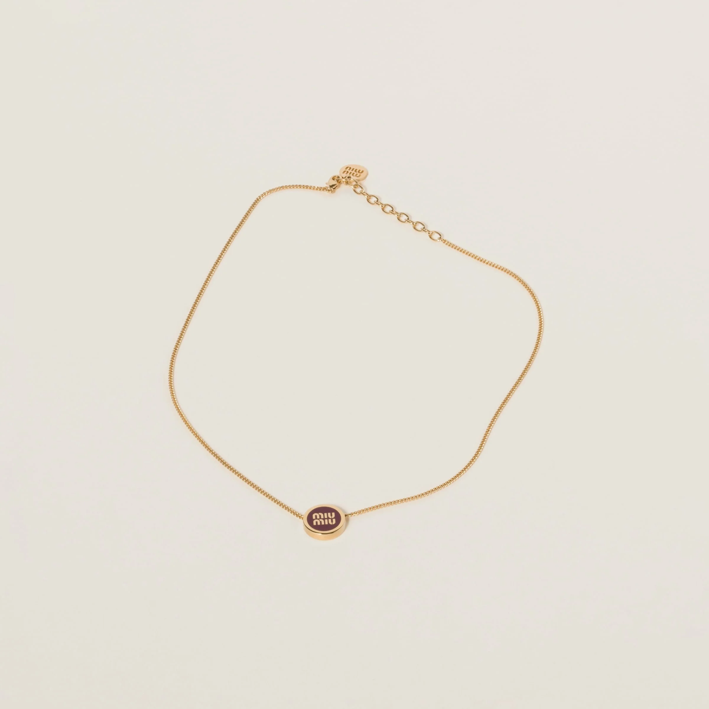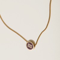 The Miu Miu logo stands out on the sleek lines of this metal necklace, thanks to its iconic character. - Product code: 5IC096_2F6T_F0399 - With enameled detail - Lobster claw clasp - Visible logo - Imported Width 48cm