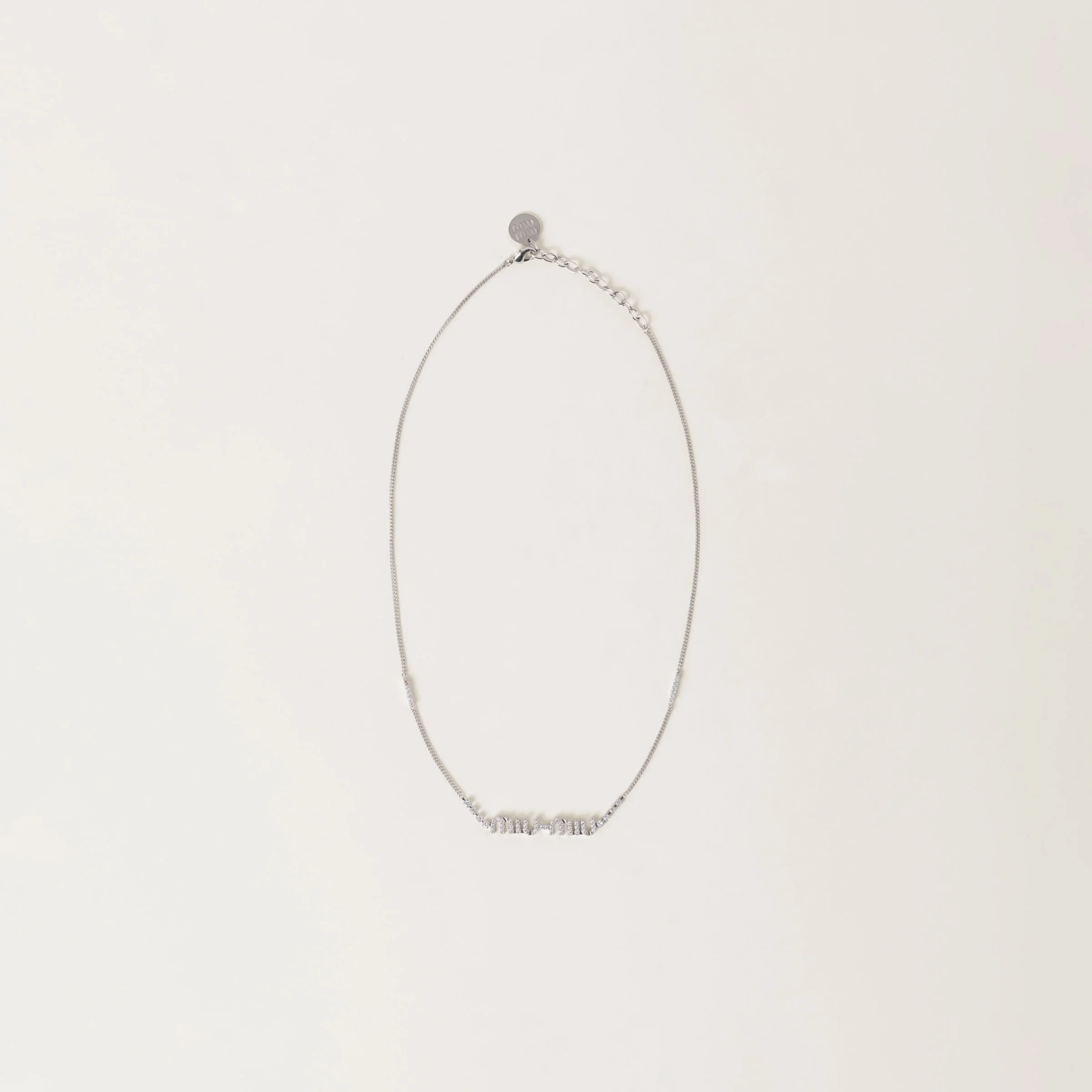 The Miu Miu logo seamlessly blends with metal necklace links and stands out thanks to the sparkling artificial crystals. - Product code: 5IC058_2DNC_F0OKL - Lobster claw clasp - Visible logo - Artificial crystals - Imported Width 47.5cm Materials Other materials