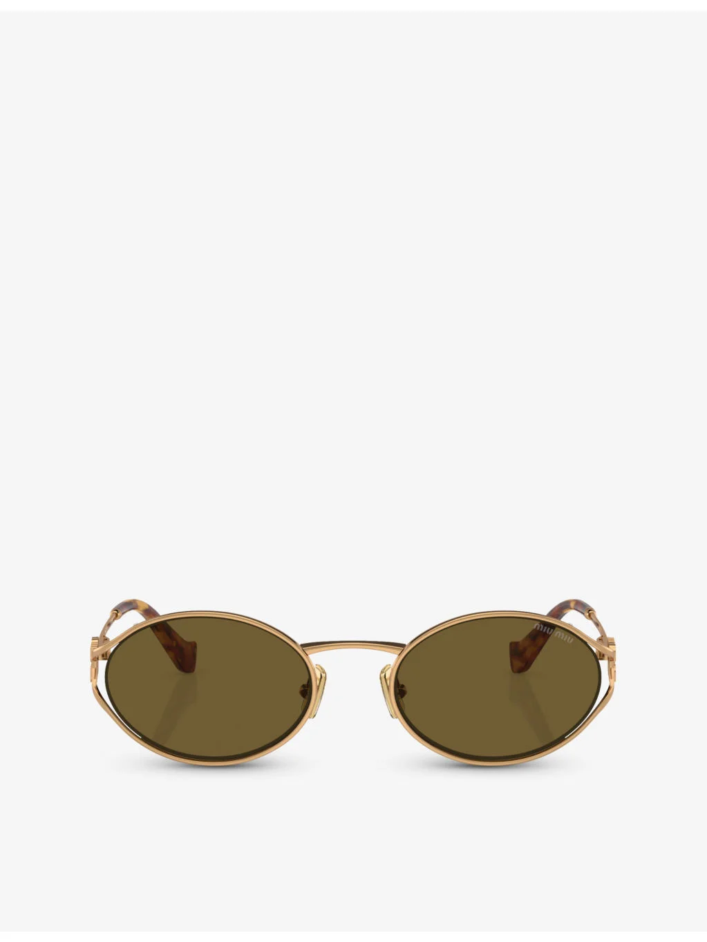 PRODUCT DETAILS - Miu Miu metal sunglasses - 100% metal - Style number: MU 52YS - Round frame, branding at the arm, tinted lens, tortoiseshell finish - Frame shape: round - Lens height 3.9cm, lens width 4.9cm, temple length 13.3cm - Wipe with a clean, dry cloth - Comes with case and cloth Ref: R04296922