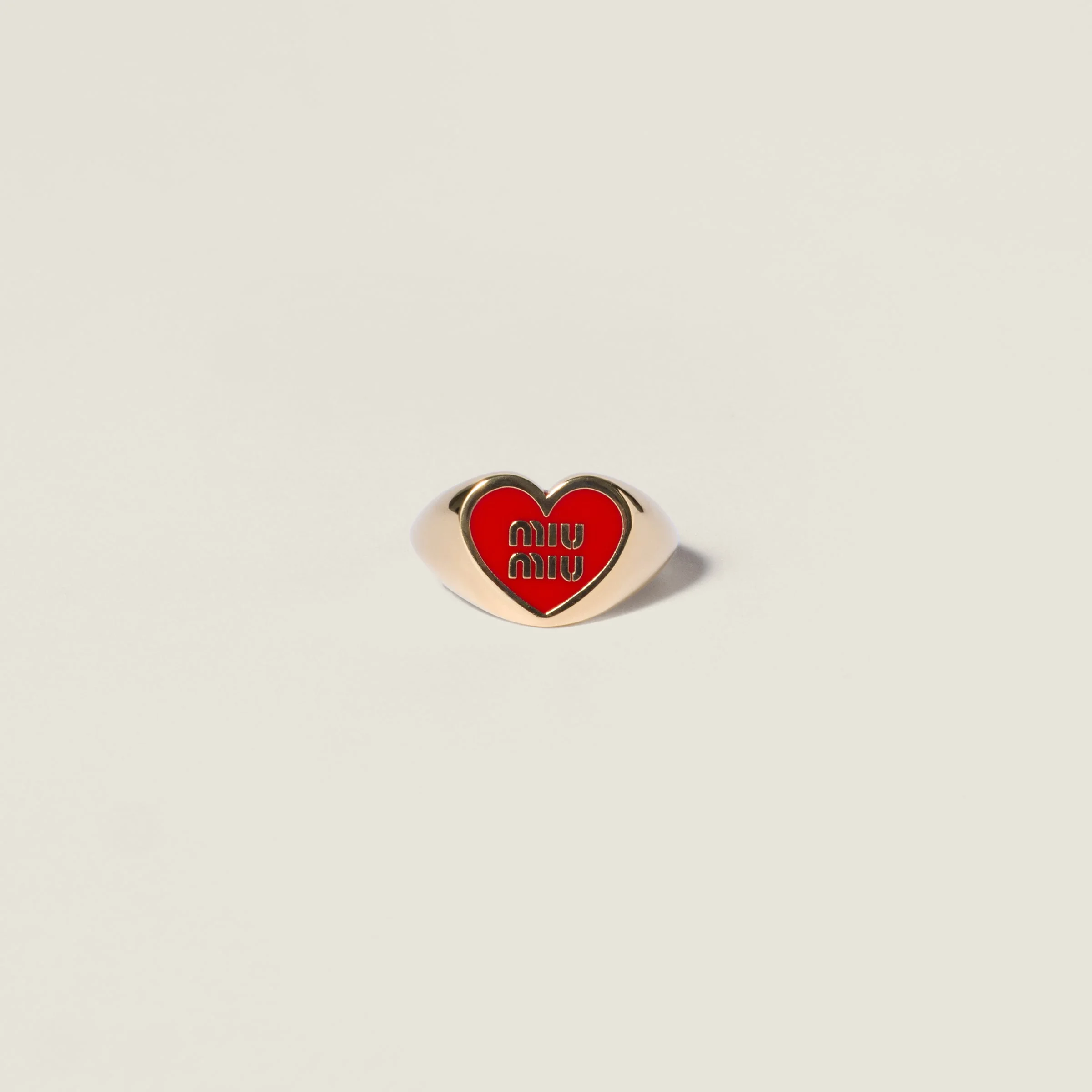 The sleek heart shape of this ring expresses Miu Miu's vibrant femininity, while the logo detail reflects its iconic, experimental character. - Product code: 5IA084_2IE2_F0R8H - With enameled detail - Sized item - Logo on enameled detail - Imported Materials Main material: Brass