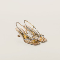 Bold, feminine lines characterize these new metallic leather sandals. The shine of the refined material is combined with sparkling details that add brilliant touches to the shoe. - Product code: 5X541D_3L1N_F0522_F_055 - Upper with artificial crystals - Fabric logo label - Leather sole - 55 mm metallic finish heel - Imported